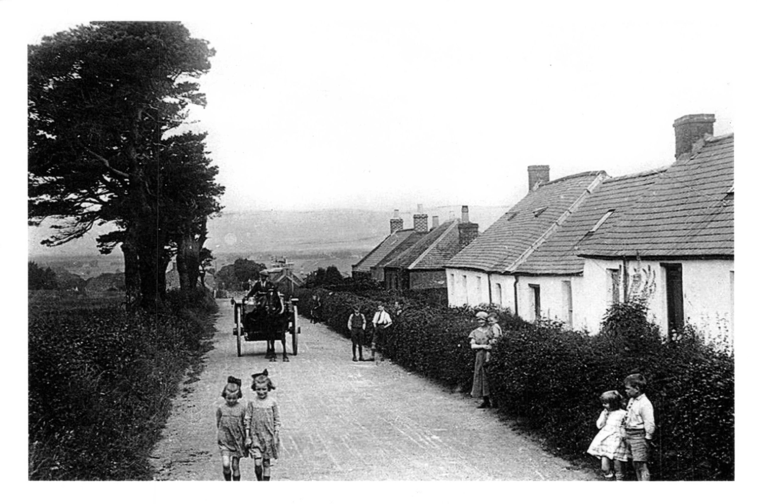 Sledging early 60s at Gardenston St. left to right, Susan Hogg, Davy Thomson, Robert Taylor, Malcolm Nicol, Irene Smith, Eddie Terran, Allan Nicol, Charlie Elder, Hamish Williamson, Derek Wood. Photo taken by Reg Clark.