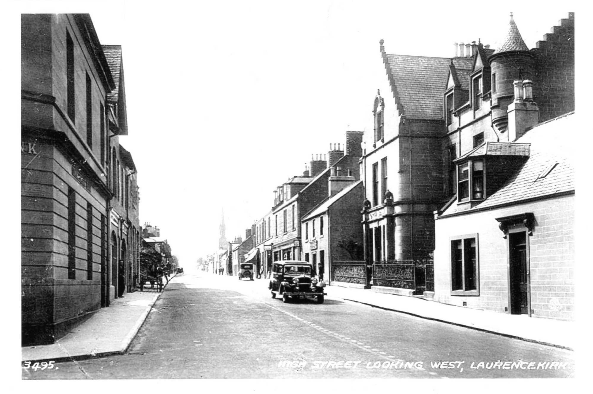 Bottom of Laurencekirk High Street, possibly late 19th or early 20th century.